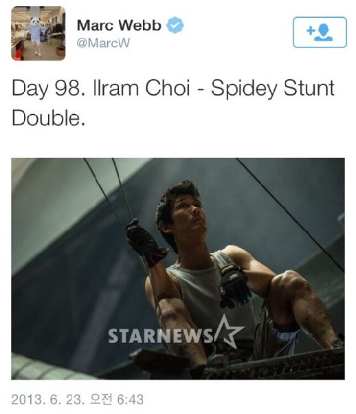 한국인 스턴트맨 최일람/사진=마크 웹 감독 트위터
