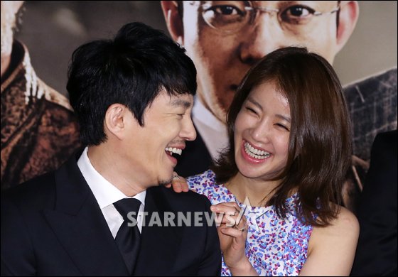 배우 이범수, 이시영이 28일 오전 서울 중구 메가박스 동대문에서 열린 영화 '신의 한 수' 제작보고회에 참석하고 있다.