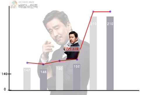 류승룡의 광고효과가 급상승하고 있다. 류승룡은 최근 모바일배달 애플리케이션 '배달의 민족'과 재계약했다. '배달의 민족'은 지난 4워 류승룡이 누워서 말달리며 찍은 광고가 공개되자 상당한 화제를 샀다.