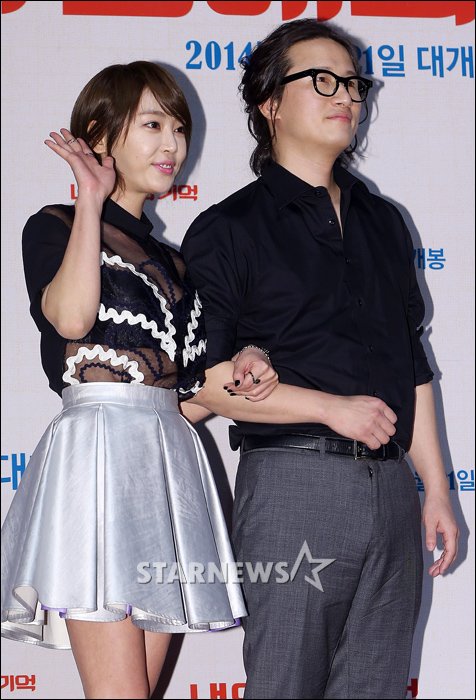 배우 강예원, 송새벽이 6일 오후 서울 광진구 자양동 롯데시네마 건대입구점에서 열린 영화 '내 연애의 기억' 언론시사회에 참석해 포즈를 취하고 있다.