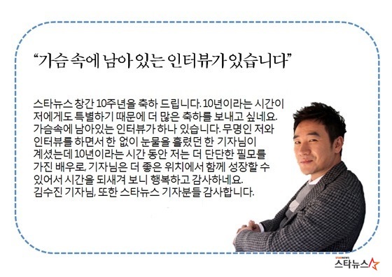 2004년 9월 첫 발을 디딘 국내 최초 리얼타임 연예뉴스 전문매체 스타뉴스가 출범 10년을 맞았다. 10년 간 수많은 스타들이 스타뉴스와 인연을 맺었다. 스타뉴스가 만난 스타, 그리고 스타들이 본 스타뉴스. 그 10년의 에피소드를 모아봤다.