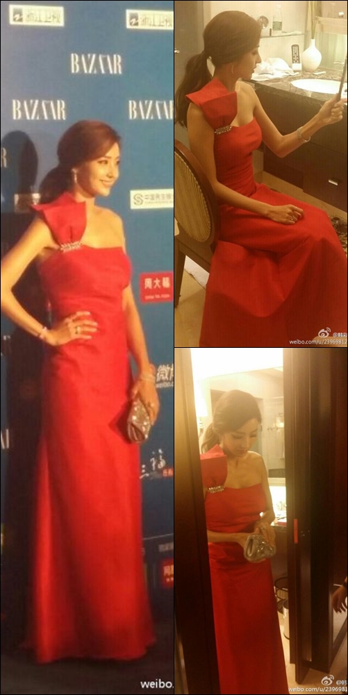 한채영은 19일 웨이보에 '2014 바자 스타 자선 행사'에서 찍은 사진을 게재했다.
