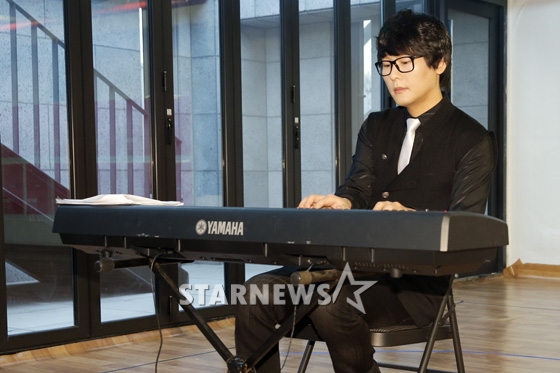 그룹 더 크로스 이시하가 23일 오전 서울 종로구 동숭동 대학로 DCF대명문화공장에서 열린 이야기 콘서트 'don't cry' 연습 현장공개에서 건반을 연주하고 있다.