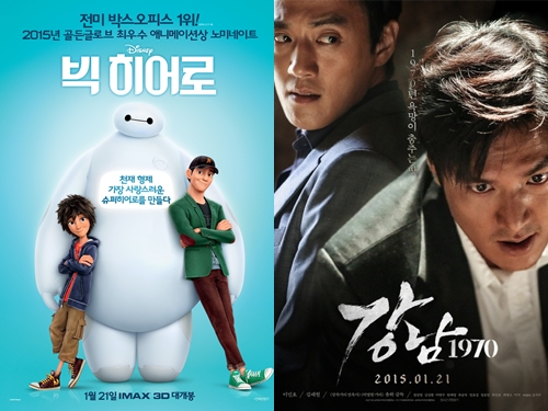 영화 '강남1970'과 애니메이션 '빅 히어로'가 반전 매력으로 극장가를 이끌고 있다.