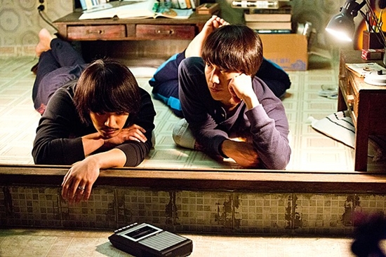 정우와의 우정 외에 정우와 한효주의 가교 역할을 했다는 점도 영화와 현실의 공통 점이었다. 극중 이장희는 자작곡을 '나 그대에게 모두 드리리'를 오근태에게 빌려주고, 오근태는 민자영(한효주 분)에게 이 노래를 부르며 속마음을 고백해 연인으로 발전한다. 마찬가지로 정우와 한효주는 본격적으로 멜로 장면을 촬영하기 직전 진구에게 SOS를 보냈고, 진구가 해결사로 나섰다.