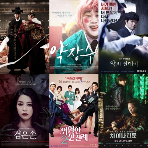 '어벤져스2' 개봉보다 한 주 앞선 17일엔 '검은손', 한 주 뒤인 29일엔 '위험한 상견례2'와 '차이나 타운'이 연달아 선보여진다. 각 작품의 장르 역시 호러, 코미디, 범죄드라마로 색깔이 다르다.