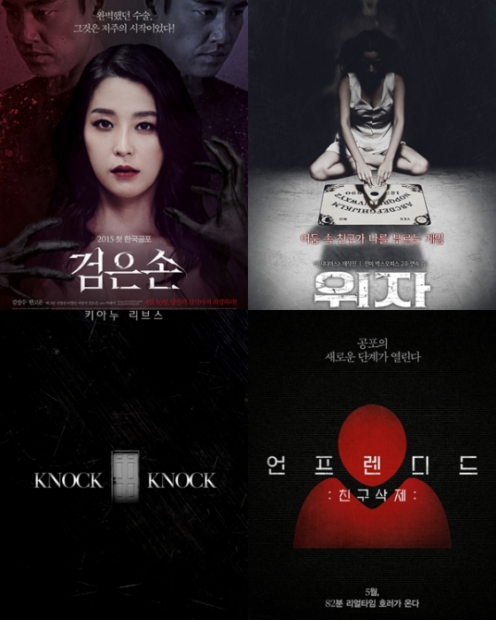 오는 16일 개봉하는 '위자'와 '검은손'은 모두 공포 장르 영화다. 앞서 지난 2일에는 '팔로우'가 개봉했고, 5월에 첫 선을 보일 '노크, 노크', '언 프렌디드:친구삭제' 역시 공포 영화다. 초여름이라고 하기에도 이른 봄날에 선보여지는 공포영화들이다.