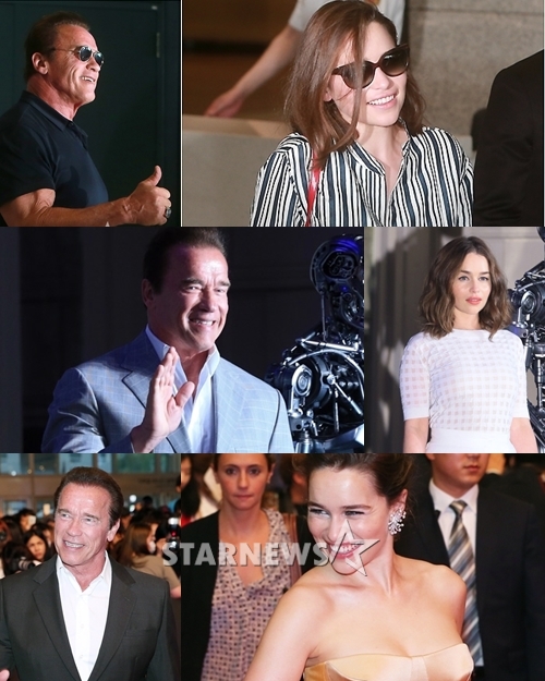 아놀드 슈왈제네거와 에밀리아 클라크는 2박 3일간의 홍보 일정을 마치고 3일 일본으로 출국한다. 지난 1일 입국부터 2일 기자회견과 레드카펫을 통해 탁월한 팬서비스를 선보였던 이들은 "곧 돌아오겠다(I'll be back)"이라는 '터미네이터' 시리드 최고의 유행어를 남겨 다음을 기대케 했다.