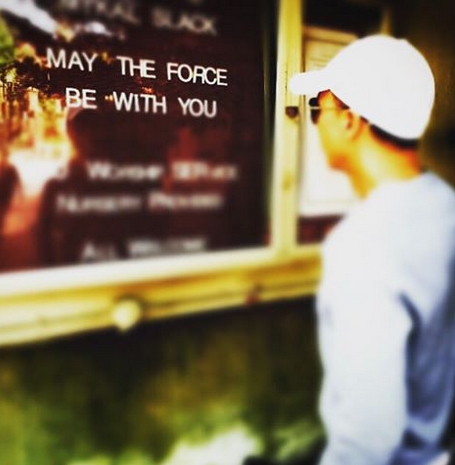 이 문구는 '스타워즈' 시리즈에서 제다이들끼리 인사를 할 때 쓰는 말이다. "I'm your father(내가 네 아빠다)"라는 대사만큼 유명하다. 때문에 별다른 설명이 없는 사진이지만 이 대사만으로도 네티즌들은 "첫 번째 중국인 제다이가 된 것을 축하한다"며 큰 관심을 보이고 있다.