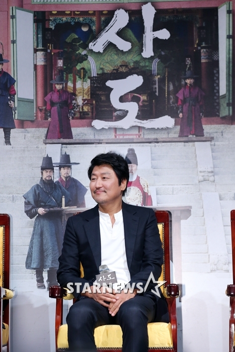 송강호는 11일 서울시 강남구 압구정CGV에서 열린 영화 '사도'(감독 이준익·제작 타이거픽쳐스) 제작보고회에서 "이전까지 많은 훌륭한 선배들이 영조를 연기해 왔는데, 이번엔 현실적인 영조의 모습을 보여줄 것"이라고 말했다.