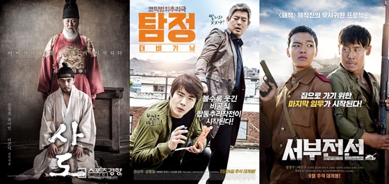 올 추석을 겨냥해 메이저 투자배급사가 내놓은 한국영화는 세편. 쇼박스가 '암살'에 이어 야심차게 준비한 '사도'와 CJ E&M이 선보이는 '탐정', 그리고 롯데엔터테인먼트가 절치부심하며 내놓은 '서부전선'이다.