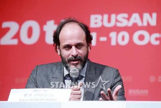 루카 구아다니노 감독이 2일 오후 부산 해운대구 동서대학교 센텀캠퍼스에서 진행된 제20회 부산국제영화제(BIFF) 갈라 프레젠이션 영화 '비거 스플래쉬' 기자회견에서 취재진 질문에 답하고 있다.