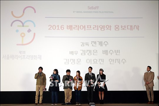 연예영화[★포토]'제5회 배리어프리영화제' 개막발행 : 2015.11.19 ・ 20:08임성균 기자19일 오후 서울 마포구 상암동 한국영상진흥원에서 열린 '제 5회 서울배리어프리영화제' 개막식에서 홍보대사로 위촉된 배우 배수빈과 김정은을 비롯한 홍보대사들이 소감을 말하고 있다.제5회 배리어프리영화제는 장애와 상관없이 모두가 함께 즐기는 영화축제로 오는 22일까지 열린다.<저작권자 © 스타뉴스, 무단전재 및 재배포 금지>배리어프리영화제추천 기사임성균 기자기자홈좋아요 연예-영화의 인기 급상승 뉴스연예-영화의 최신 뉴스