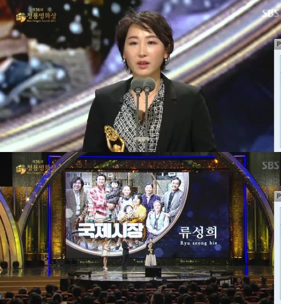 '국제시장' 류성희는 26일 오후 서울 경희대학교 평화의전당에서 열린 제36회 청룡영화상 시상식에서 미술상을 수상했다.
