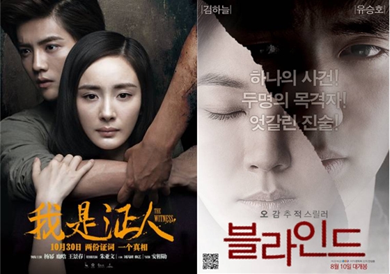 중국판 '나는 증인이다' 포스터와 '블라인드' 포스터 / 사진제공=문와처