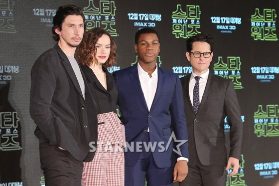 연예영화[★포토]영화 '스타워즈'의 주역들발행 : 2015.12.09 ・ 12:05박찬하 인턴기자배우 아담 드라이버, 데이지리들리, 존 보예가, JJ 에이브럼스 감독(왼쪽부터)이 9일 오전 서울 영등포구 여의도 콘래드호텔 파크볼룸에서 열린 영화 '스타워즈 : 깨어난 포스' 기자간담회에 참석해 포즈를 취하고 있다.<저작권자 © 스타뉴스, 무단전재 및 재배포 금지>영화 스타워즈 기자간담회추천 기사좋아요 연예-영화의 인기 급상승 뉴스연예-영화의 최신 뉴스