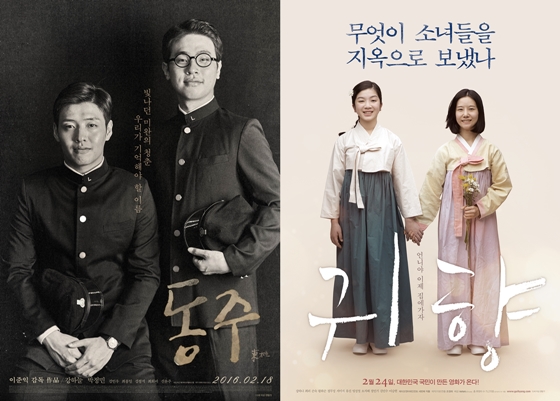 일제 치하 아픔과 비극을 담은 두 영화가 1주일 간격으로 개봉한다. 시인 윤동주의 이야기를 그린 영화 '동주'와 일본군 위안부 문제를 소재로 삼은 '귀향'이다.