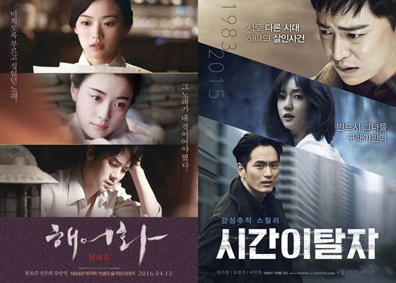 ○…한효주, 천우희, 유연석이 뭉친 '해어화'와 조정석, 임수정, 이진욱이 뭉친 '시간이탈자'가 13일 나란히 개봉 맞대결을 펼친다. '해어화'는 1940년대를 살아가는 마지막 기생의 이야기를, '시간이탈자'는 1983년과 2015년을 살아가는 두 남자와 같은 얼굴을 한 두 여자의 시, 공간을 넘나드는 이야기를 담았다. 차세대 스크린을 이끌 스타 배우들의 존재감 대결만으로도 관심을 모을 것 같다.