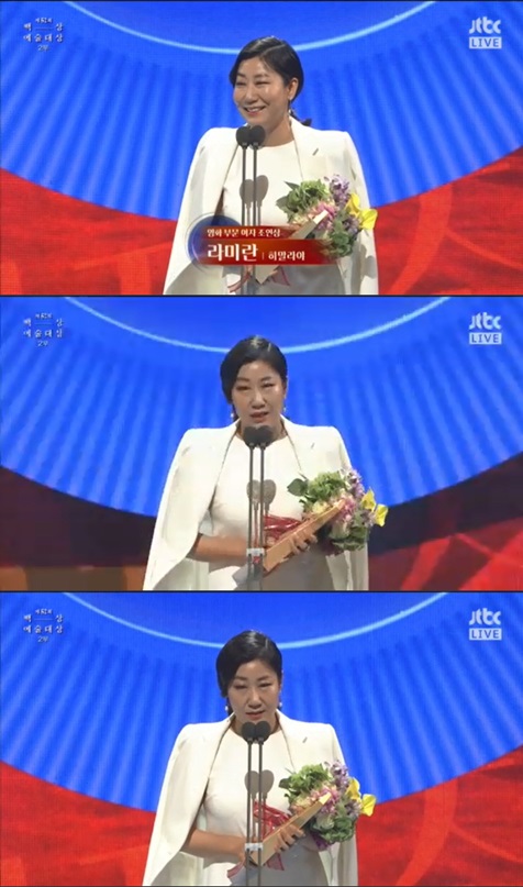 배우 라미란이 제 52회 백상예술대상에서 영화 여자조연상을 받았다.