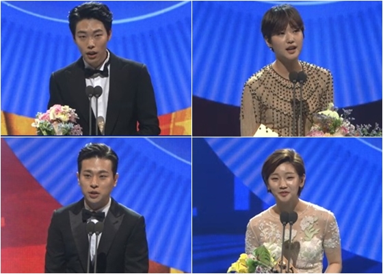 TV부문 신인연기상은 tvN '응답하라 1988'의 류준열과 '치즈인더트랩'의 김고은이 수상했다. 무뚝뚝하지만 속 깊은 '츤데레' 캐릭터를 연기한 류준열, '은교'를 넘어 브라운관의 로맨스물로 발을 넓힌 김고은 모두 두 작품으로 새로운 매력을 과시했다.