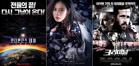 한국영화와 할리우드 외화들의 엎치락뒤치락 박스오피스 다툼이 당분간 이어질 것으로 예상된다. 여름이 점차 맹위를 더해가는 6월의 넷째주에도 분명한 콘셉트, 강렬한 이야기를 내세운 이야기들이 관객과 새롭게 만난다. 할리우드 SF 재난영화 '인디펜던스 데이:리써전스', 손예진 김주혁의 청불 스릴러 '비밀은 없다', CAI 요원의 기억을 범죄자에게 이식한다는 범죄물 '크리미널' 등이다.