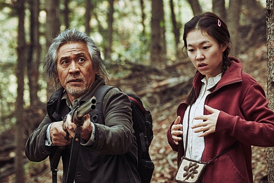 브라운관과 스크린, 선과 악을 자유로이 오가는 대세 조진웅은 별다른 설명 없이 악행을 거듭하는 냉혹한 인물을 서늘하게 그려낸다. 박병은 등 살기 번득이는 엽사 무리도 있다. 그러나 뭐니뭐니해도 돋보이는 건 기성 역의 안성기다. 환갑을 훌쩍 넘은 극 안팎의 나이에도 불구하고 첫 등장부터 부스스한 백발과 딴판인 탄탄한 근육질 몸매를 과시하며 허를 찌른다. 야산을 제집 뒤뜰처럼 넘나드는 체력, 아예 '람보'라 불리는 활약상과 파괴력을 감안하면 납득되는 비주얼이다. 안성기가 아니었으면 이대로 기획조차 할 수 없었을 것이라는 감독의 말은 분명 사실이다. 한예리를 들쳐 업고 야산을 뛰어다니면서도 힘든 기색 없이 한번 더 카메라 앞에 섰다는 국민배우는 진정한 사기캐릭터다.