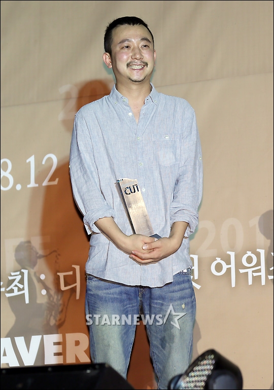 장재현 감독이 12일 오후 충북 제천시 청풍리조트 레이크호텔에서 열린 '2016 디렉터스 컷 어워즈'에서 신인감독상을 수상하고 포즈를 취하고 있다.