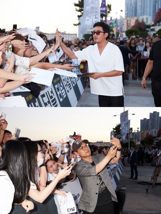 영화 '터널'의 배우 하정우와 김성훈 감독이 부산 해운대를 뜨겁게 달궜다.