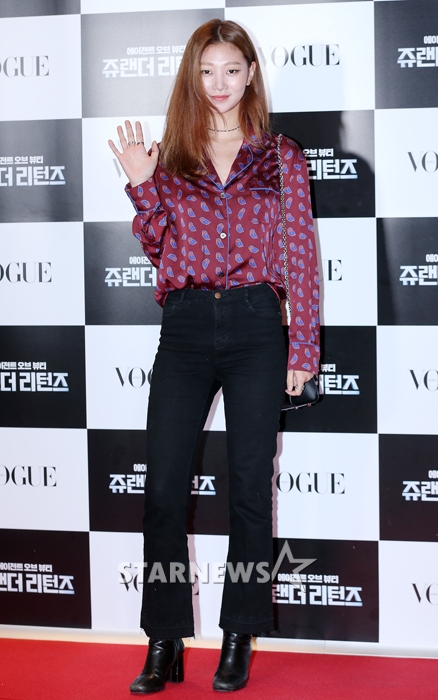 모델 여연희가 23일 오후 서울 강남구 CGV 청담씨네시티점에서 진행된 영화 '쥬랜더 리턴즈' VIP 시사회에 참석해 포즈를 취하고 있다.