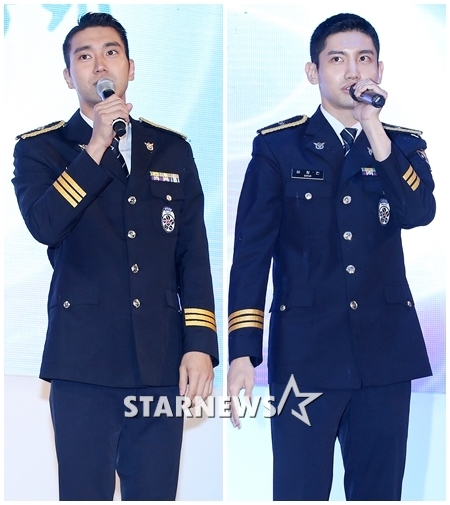 의경으로 군 복무 중인 최시원과 최강창민은 31일 오후 서울 용산구 경찰청 인권센터 야외마당에서 진행된 '제5회 경찰인권영화제'에 참석했다.