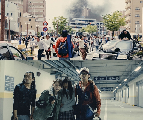 재미있는 것은 영화의 주요 배경인 아웃렛 쇼핑몰은 한국에서 촬영했다는 사실. 파주의 실제 쇼핑몰에서 약 40일간 촬영을 진행했고, 100여 명의 한국인 배우가 좀비로 출연했다. 가장 인상적인 좀비인 높이뛰기 좀비 또한 한국인인데, 프리랜서 무용수이기도 한 배우 이용훈이 연기했다. 일본산 좀비물에 한국 좀비가 대거 나오는 셈이다.
