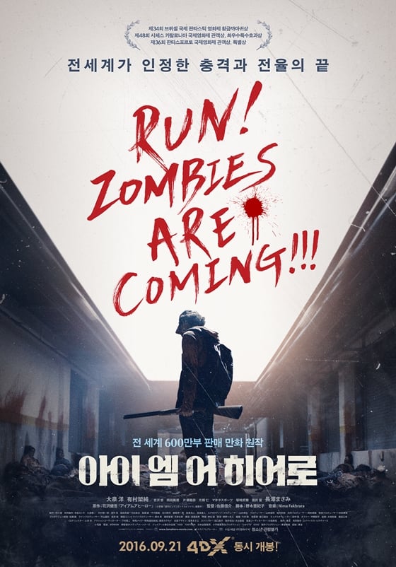'아이 엠 어 히어로'는 전통적인 좀비물의 작법에서 다소 비켜난 '부산행'이 뭔가 서운했던 장르영화 팬이 반갑게 즐길 유혈낭자 좀비물이다. '부산행'을 보고 좀비물에 관심이 생긴 이들이라면 피칠갑 하드고어물에 대한 마음의 준비가 필요하다.