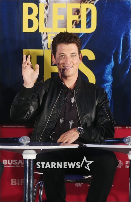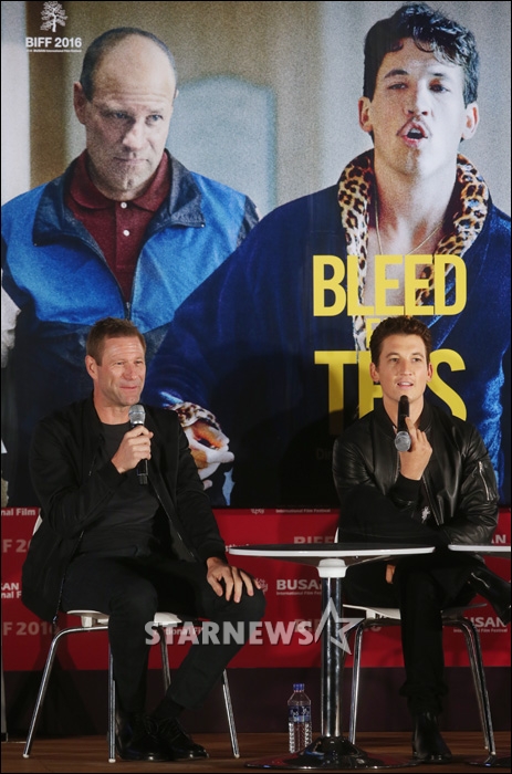 핏방울이 떨어지도록 드럼스틱을 휘두르던 '위플래쉬' 드러머 앤드류, 극단의 선과 악을 오갔던 '다크나이트'의 검사 하비 덴트. 광기 어린 캐릭터로 강렬한 인상을 남겼던 할리우드의 두 남자가 제 21회 부산국제영화제(BIFF)를 찾았습니다. 배우 마일즈 텔러(29), 그리고 애론 에크하트(48)입니다. 두 사람은 올해 영화제 갈라 프레젠테이션 부문에 초청된 벤 영거 감독의 영화 '블리드 포 디스'(Bleed for This)의 주연배우로 영화제에 초청됐습니다. 감독은 물론 두 배우 모두 한국행이 처음입니다.