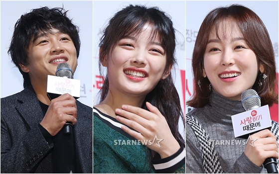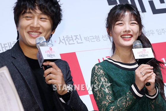 20일 오전 서울 압구정CGV에서 영화 '사랑하기 때문에'(감독 주지홍) 제작보고회가 열렸다. '사랑하기 때문에'는 기억을 잃어버린 작곡가가 사랑에 서툰 사람들의 몸을 끊임없이 갈아타며(?) 웃음과 감동을 전하는 휴먼 드라마다. 차태현이 문제의 작곡가가 돼 웃음과 감동을 전한다. 차태현 외에 김유정, 서현진, 박근형, 김윤혜 등이 이날 제작보고회에 함께하며 흥겨운 분위기를 이끌었다.