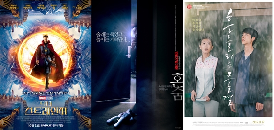 유해진의 코미디 '럭키'가 300만을 돌파하며 승승장구하고 있는 가운데 색다른 장르를 앞세운 신작들이 관객을 찾아온다. 신상 마블 히어로 '닥터 스트레인지'가 화제성과 물량공세를 앞세워 강세를 예고하는 중. 류덕환 주연의 한국 공포물 '혼숨', 지난해 부산영화제에서 소개됐던 '흔들리는 물결'도 나란히 가을의 관객들을 만난다.
