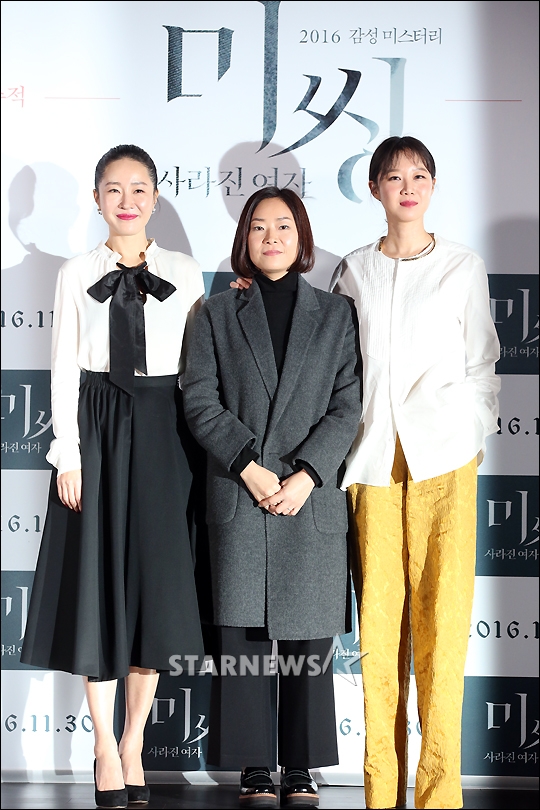 배우 엄지원과 이언희 감독, 공효진이 21일 오후 서울 동대문 메가박스에서 열린 영화 '미씽 : 사라진여자'(감독 이언희) 언론시사회에 참석해 포즈를 취하고 있다.