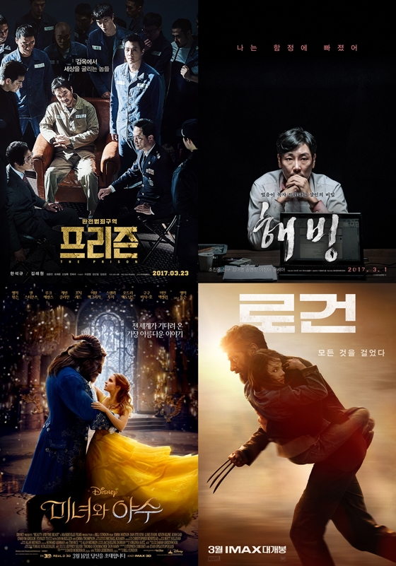 3월 흥행작 상위 10위권에는 '미녀와 야수'가 355만명을 동원해 1위, '로건'이 206만명으로 2위, '프리즌'이 181만명으로 3위를 차지했다. 이어 '콩:스컬 아일랜드', '해빙', '23아이덴티티', '재심', '보통사람', '공각기동대:고스트 인 더 쉘', '히든피겨스' 순이다.