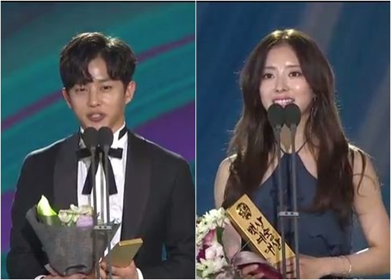 김민석과 이세영은 3일 오후 4시 50분부터 서울 삼성동 코엑스 D홀에서 제53회 백상예술대상 시상식에서 SBS '닥터스'와 KBS 2TV '월계수 양복점 신사들'로 각각 TV부문 남녀신인연기상을 수상했다.