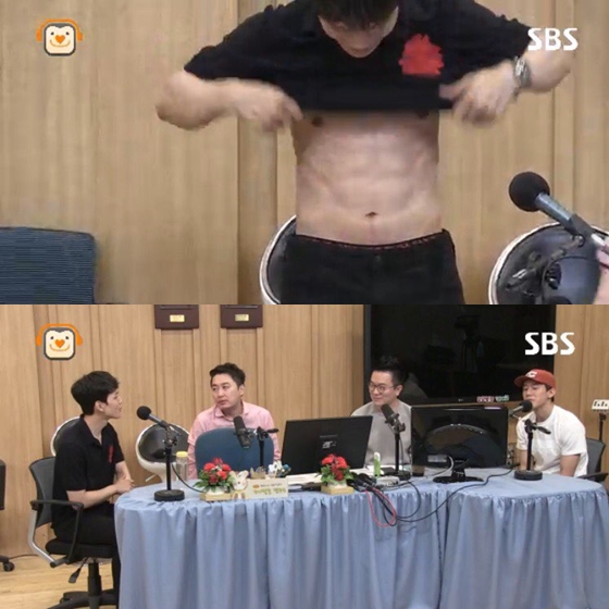 여진구가 "3개월 정도 운동을 꾸준히 했다"고 하자 DJ 컬투와 방청객은 복근을 보여달라고 요청했다.