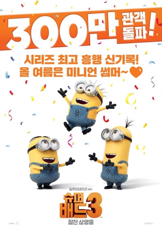 애니메이션 '슈퍼배드3'가 300만 관객을 돌파하며 흥행 질주를 이어갔다.