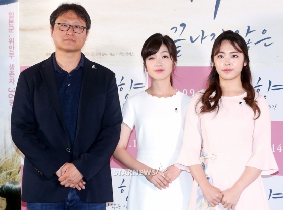 5일 오후 서울 용산CGV에서 영화 '귀향, 끝나지 않은 이야기'(감독 조정래) 언론배급시사회가 열렸다. '귀향' 1편에 이어 2편을 다시 연출한 조정래 감독과 역시 두 영화에 모두 출연한 배우 강하나와 박지희가 간담회에 참석했다.