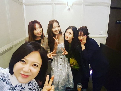 개그우먼 김숙은 19일 오후 자신의 인스타그램에 "오랜만에 뭉친 언니쓰 #한채영 #강예원 #공민지 #전소미"이란 글과 함께 사진을 게재했다.