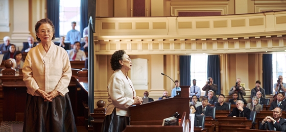 미 의회 강단에 서서 증언하는 옥분의 영어 연설 장면도 관람 포인트. 영화의 마지막 10분에는 과거 일본군 위안부였던 옥분이 세상을 향해 그동안 숨겨왔던 진실을 증언하는 장면이 등장한다.