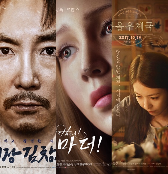'범죄도시'가 흥행질주를 하고 있는데 10월 중순 새로운 영화들이 줄줄이 선보인다. 독립운동가 김구의 어린 시절을 다룬 '대장 김창수', 대런 아로노프스키 감독의 '마더!', 그리고 보아의 또 다른 모습을 다룬 '가을 우체국'. 세 영화들이 '범죄도시'를 막을 수 있을지, 제물이 될지, 이번 주 관전 포인트다.