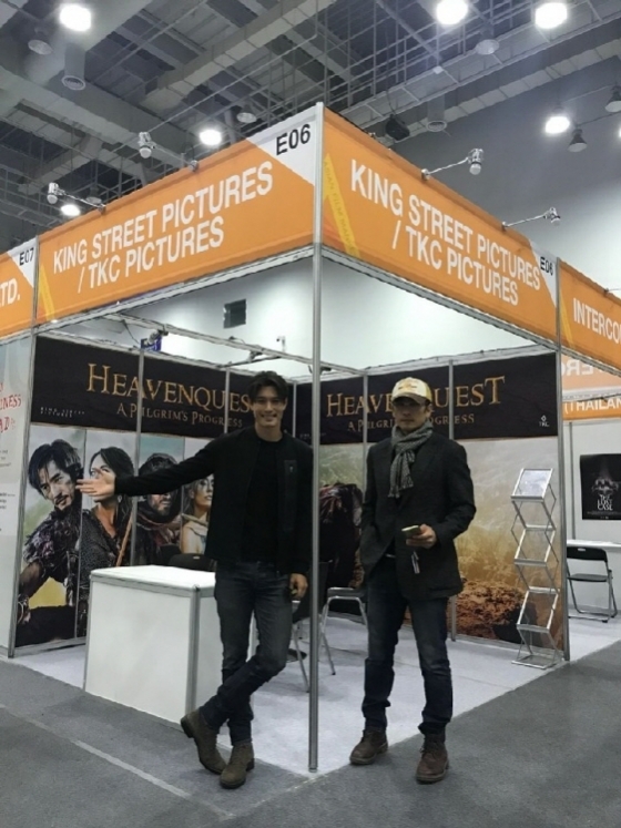 아시안필름마켓에 만들어진 '헤븐퀘스트' 부스에 서있는 차인표(왼쪽)와 리키 김/사진제공=차인표
