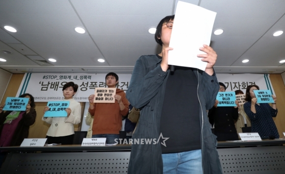 24일 오전 서울 광화문 변호사회관빌딩 조영래홀에서 '남배우A 성폭력 사건' 항소심 유죄 판결 환영 기자회견이 열렸다. 참석을 끝까지 고심했던 피해 여배우 B씨는 이날 기자회견에 직접 나서는 대신 직접 작성한 편지를 통해 입장을 밝혔다.