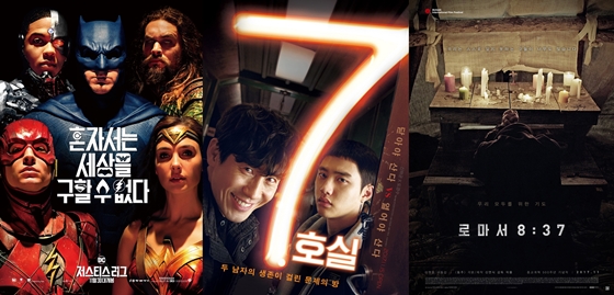 11월 기대작 중 하나인 '저스티스 리그'가 오는 15일 개봉한다. 또 같은 날 한국 영화 대표로는 신하균, 도경주(엑소) 주연의 '7호실'이 개봉해 관객들 잡기에 나선다. 이어 16일에는 죄에 대해 이야기하는 기독교 영화 '로마서 8:37'도 관객들을 찾는다.
