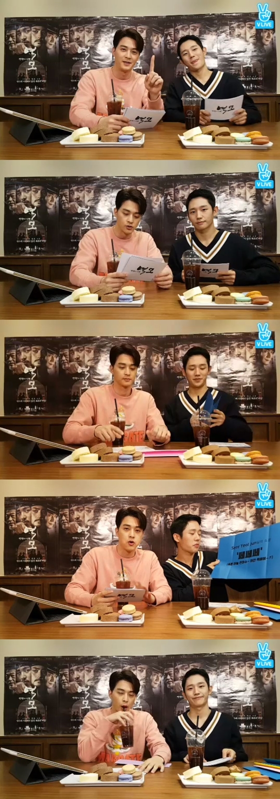 14일 오후 방송된 네이버 V 라이브 '정해인 X 김지훈 <역모 - 반란의 시대> V라이브 2차'에서 김지훈과 정해인이 시청자들의 소원을 들어주는 시간을 가졌다.