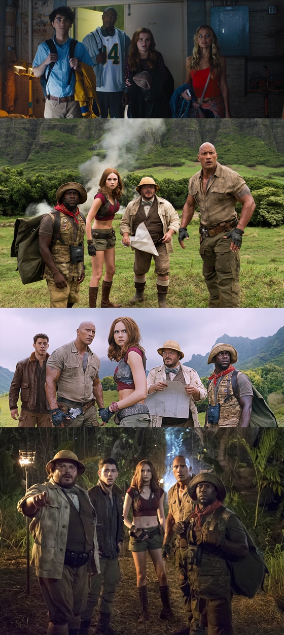 특히 현실에선 소심한 공부벌레지만 게임 속에선 강인한 남성미를 뽐내는 거대한 몸집의 고고학자 닥터 브레이브스톤 역을 맡은 드웨인 존슨부터 SNS 중독 교내 퀸카에서 중년의 지도학 연구 교수 셸리오베론으로 바뀐 잭 블랙, 예비 풋볼선수였지만 저질 체력의 동물학 전문가 무스 핀바로 변신한 케빈 하트, 끝으로 체육이라면 끔찍하게 싫어하는 운동 신경 제로인 학생에서 슈퍼 여전사로 거듭난 루비 라운드하우스 역의 카렌 길런까지 저마다의 개성을 살린 캐릭터로 완벽 변신해 극적 재미에 대한 기대감을 높이고 있다.