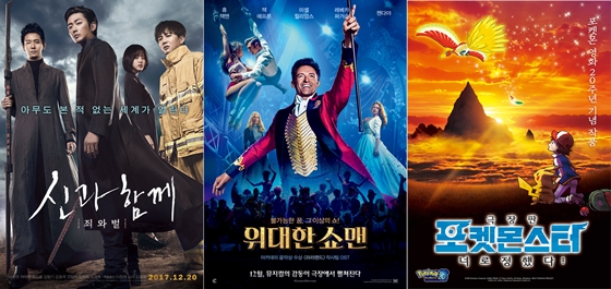 '강철비'와 '스타워즈:라스트 제다이'가 함께 열어젖힌 12월 대전에 다음 주자가 합류했다.. 야심찬 한국산 판타지 대작 '신과 함께-죄와 벌', 할리우드 뮤지컬 영화 '위대한 쇼맨'이 금주의 주자들. 겨울마다 찾아오는 '포켓몬스터 극장판' 또한 빼놓을 수 없다.